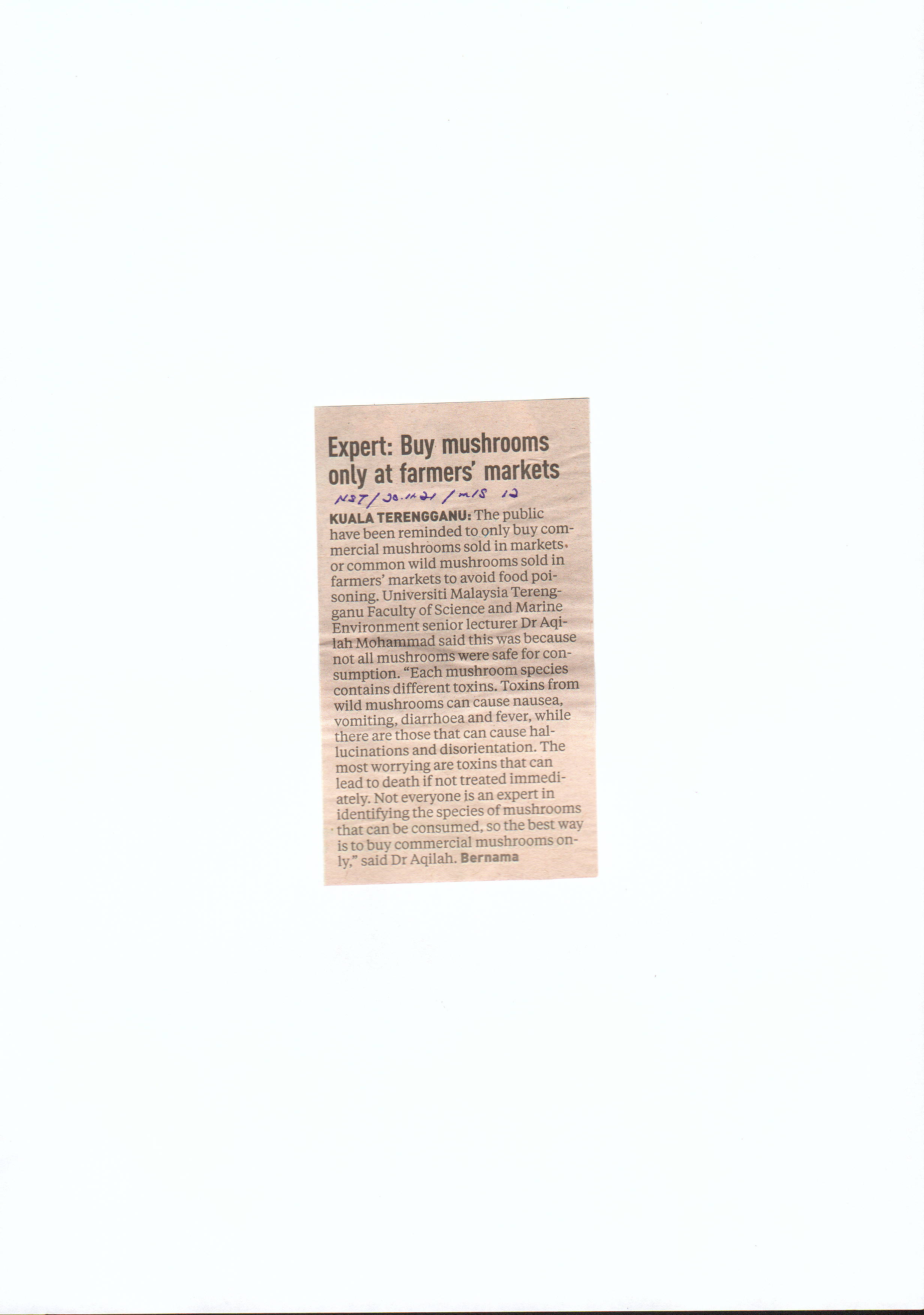 http://umt-ir.umt.edu.my:8080/handle/123456789/16213| Title: | Expert: Buy mushrooms only at farmers' markets |
