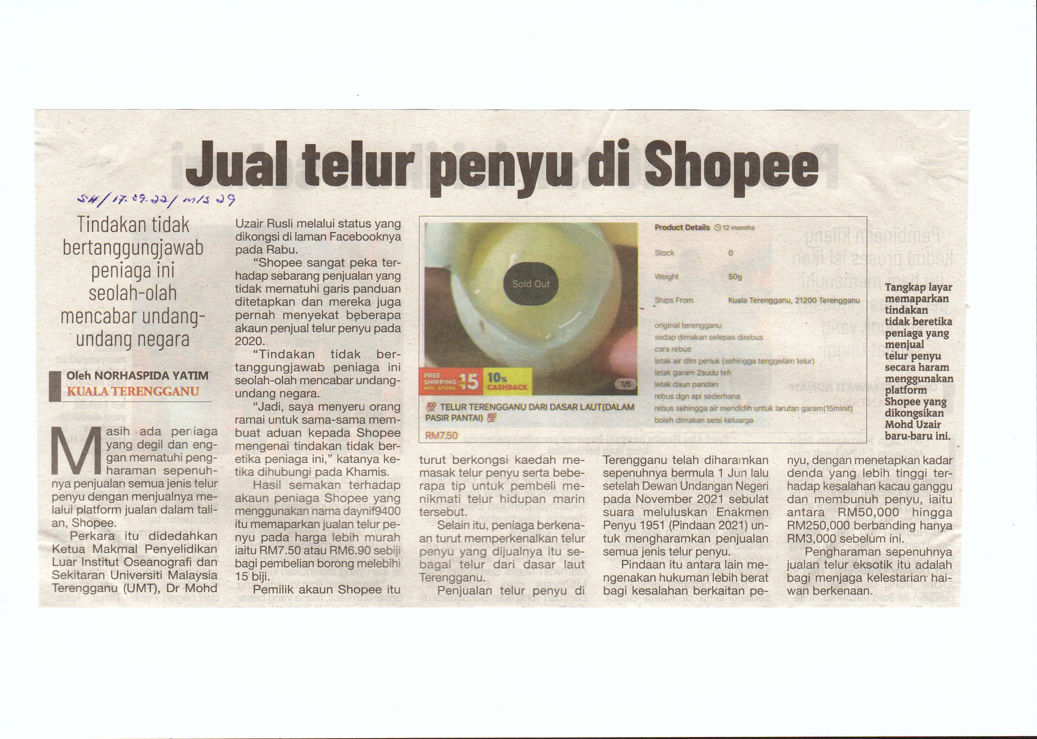 Keywords: | Telur penyu Shoppee Platform jualan dalam talian Enakmen Penyu 1951 (pindaan 2021) |