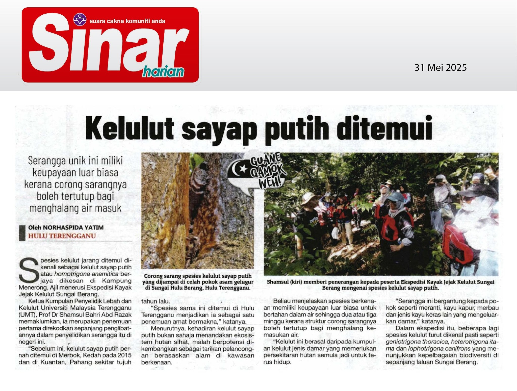 Keywords: | Kelulut sayap putih Kelulut Ekspedisi Kayak Jejak Kelulut Homotrigona anamitica Ekosistem hutan Shamsul Bahri Abd Razak |