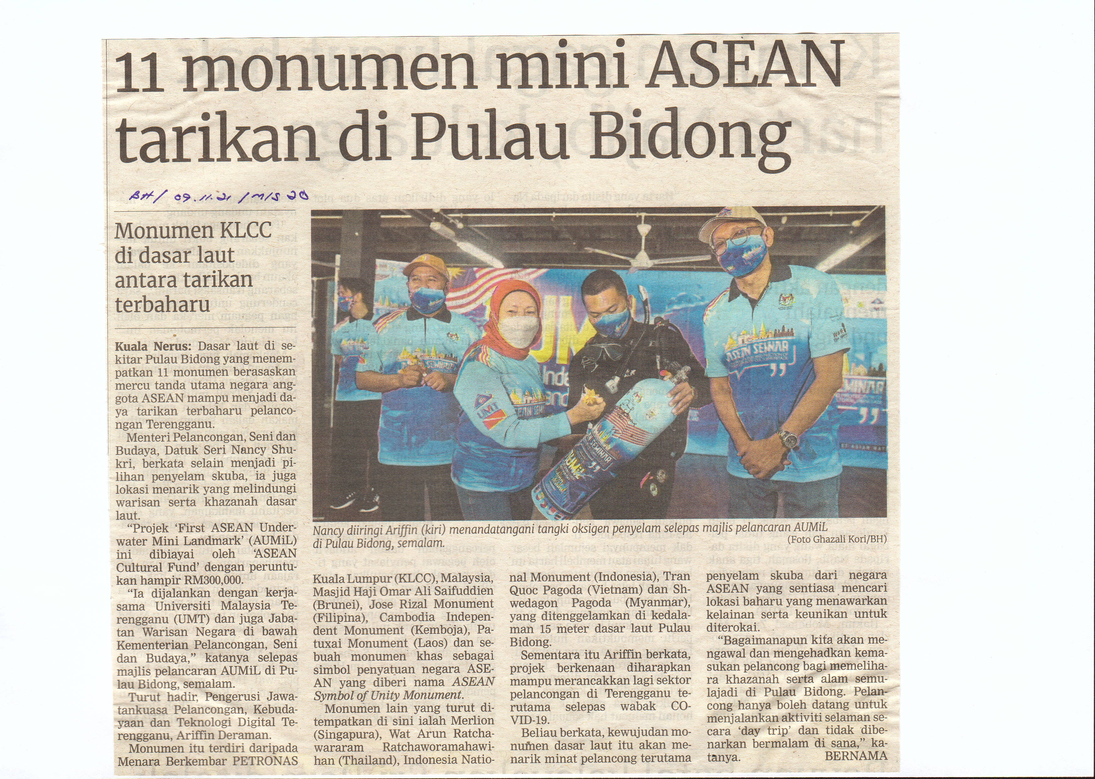 Dasar laut di sekitar Pulau Bidong yang menempatkan 11 monumen berasaskan mercu tanda utama negara anggota ASEAN mampu menjadi daya tarikan terbaharu pelancongan Terengganu.