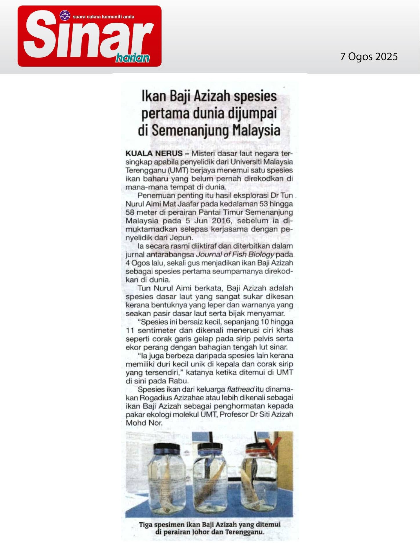 Ikan Baji Azizah spesies pertama dunia dijumpai di Semenanjung Malaysia