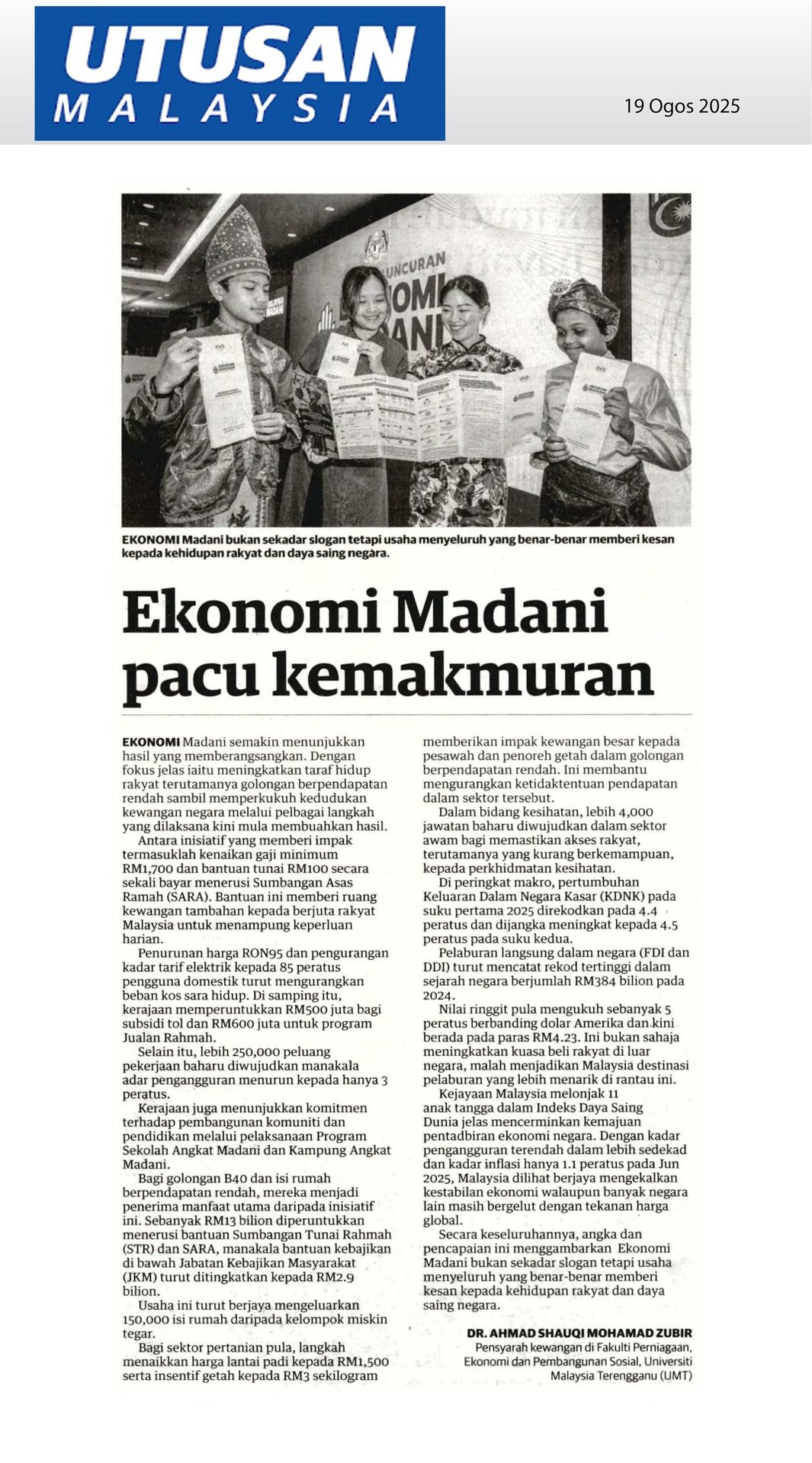 Ekonomi Madani semakin menunjukkan hasil yang memberangsangkan. Dengan fokus jelas isitu meningkatkan taraf hidup rakyat terutamanya golongan berpendapatan rendah sambil memperkukuhkan kedudukan kewangan negara melalui pelbagai langkah yang dilaksana kini membuahkan hasil.