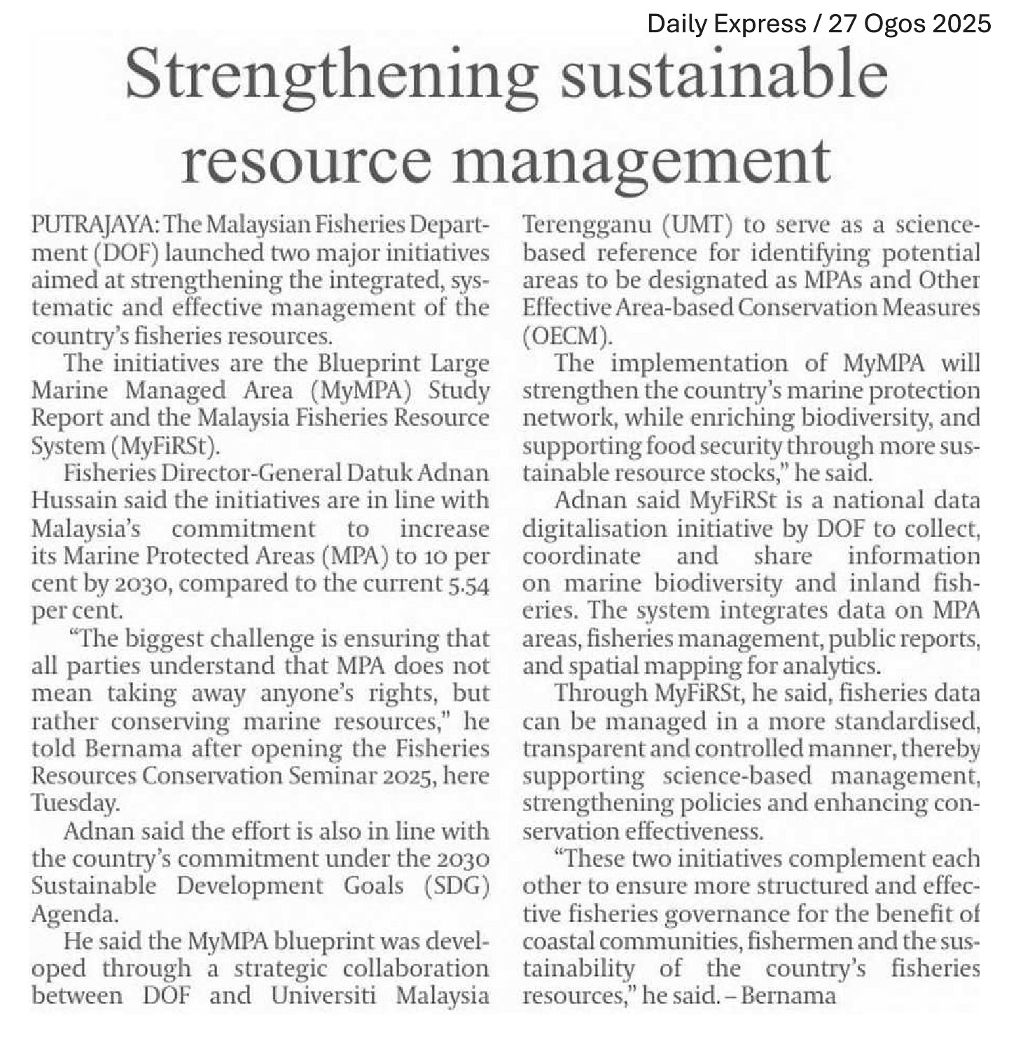 The Malaysian Fisheries Department (DOF) launched two major initiatives aimed at strengthening the integrated, systematic and effective management of the country's fisheries resources.