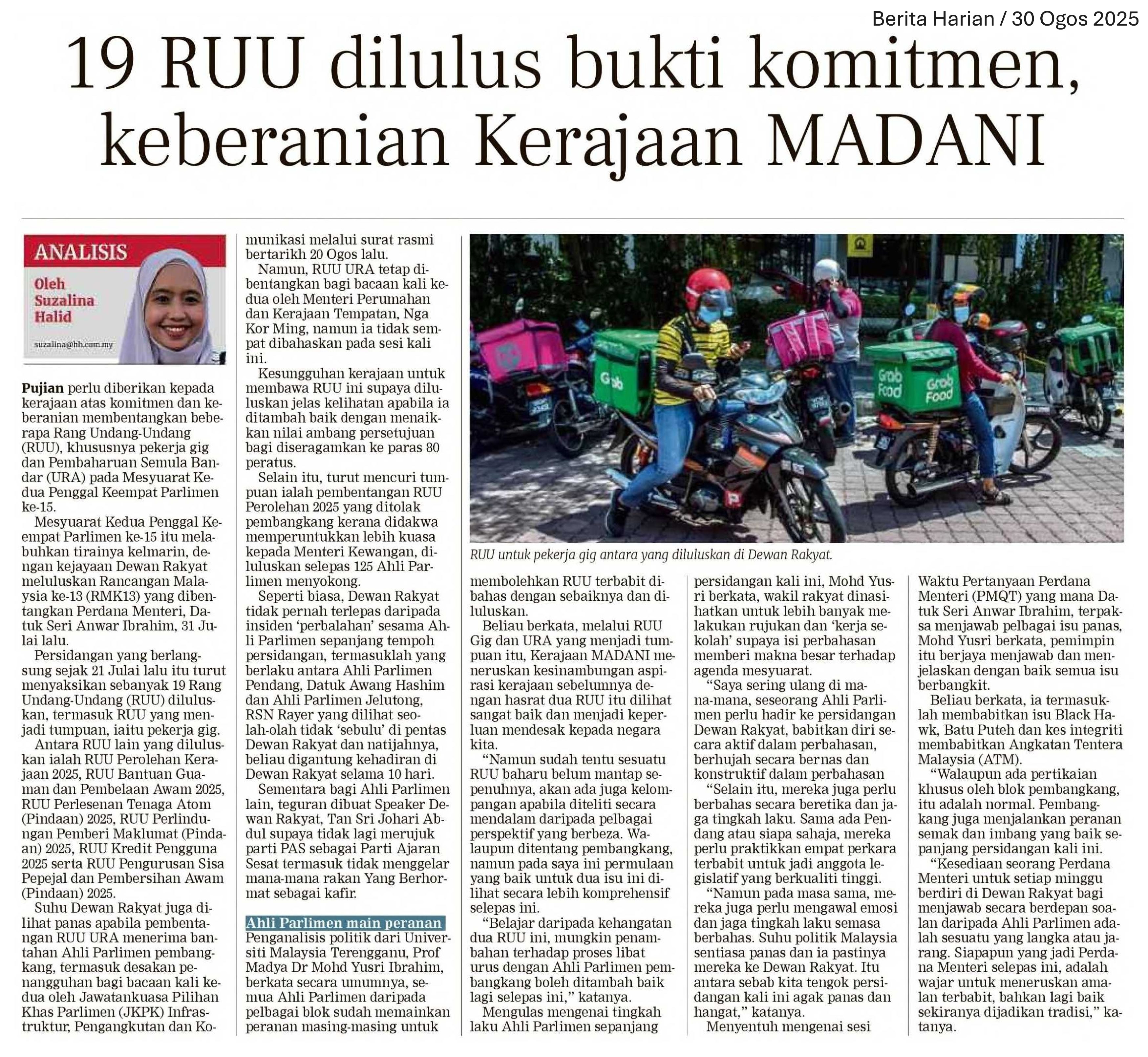 19 RUU dilulus bukti komitmen, keberanian Kerajaan MADANI