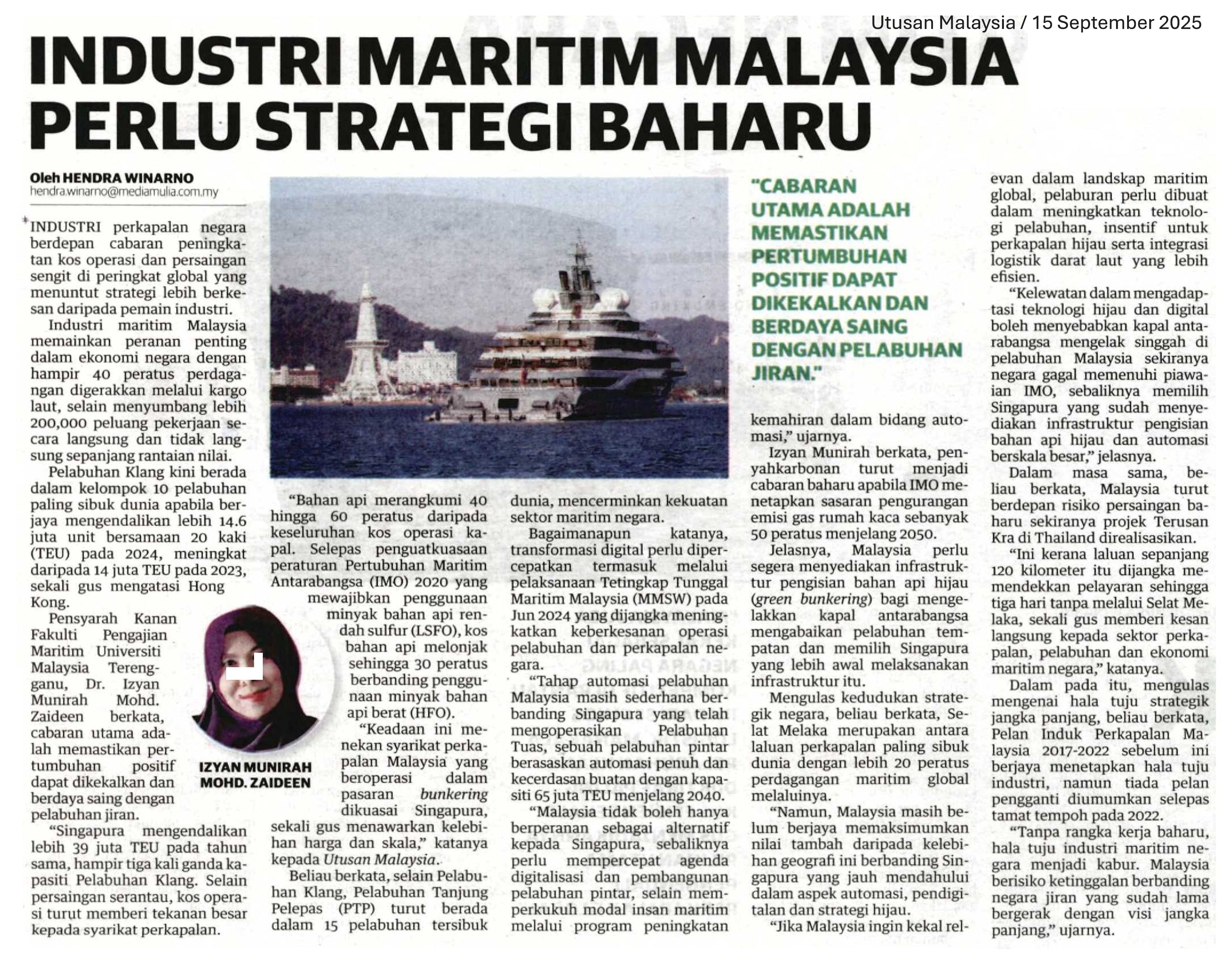Malaysia perlu segera menyediakan infrastruktur pengisisan bahan api hijau (green bunkering) bagi mengelakkan kapal antarabangsa mengabaikan pelabuhan pelabuhan tempatan dan memilih Singapura yang lebih awal melaksanakan struktur itu.