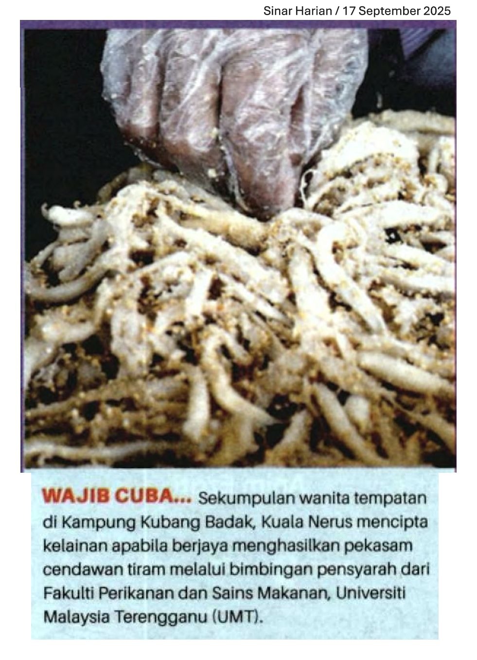 Sekumpulan wanita tempatan di Kampung Kubang Badak berjaya mencipta kelainan dengan menghasilkan pekasam cendawan tiram.