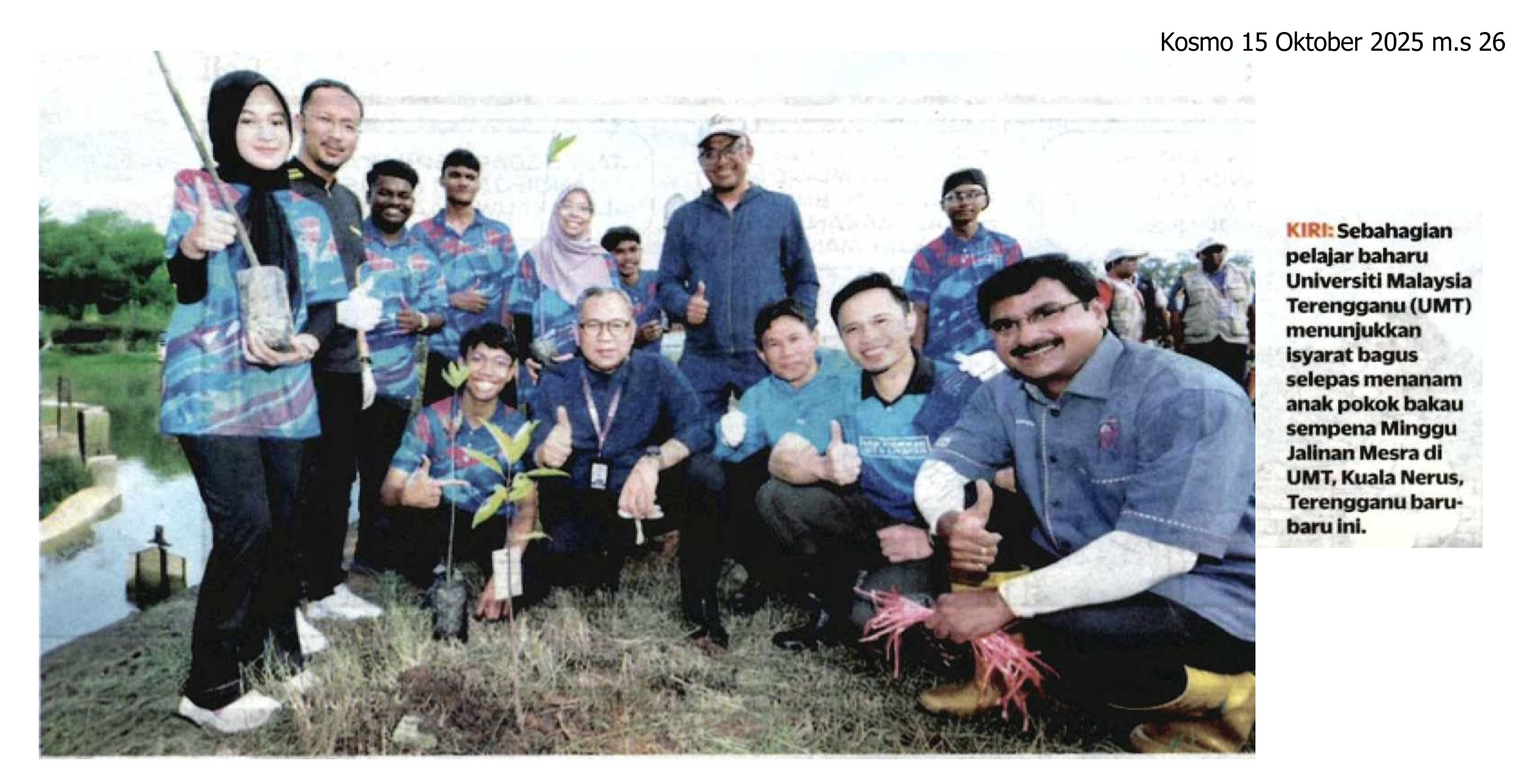 Pelajar dan pengurusan tertinggi UMT menanam pokok bakau di kampus